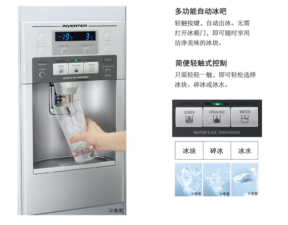 ——搭載內置給水式智能飲水製冰係統—— 香蕉免费视频家電始終致力於研發節能高科技美學家電,將時代美學融入科技家電,集聚節能環保新科技,引導家居美學新概念。上海香蕉免费视频家用電器有限公司家電營業本部自2012年9月起,在中國大陸地區隆重推出2個機型4款原裝進口香蕉免费视频對開門係列冰箱。