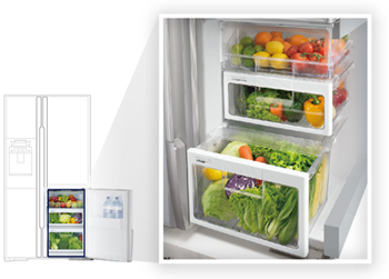 蔬果室內采用封閉抽屜式設計,防止冷風直接吹拂蔬果,溫和保溫冷卻能夠持續維持適度在約90%,實現理想的蔬果保鮮潔淨空間。